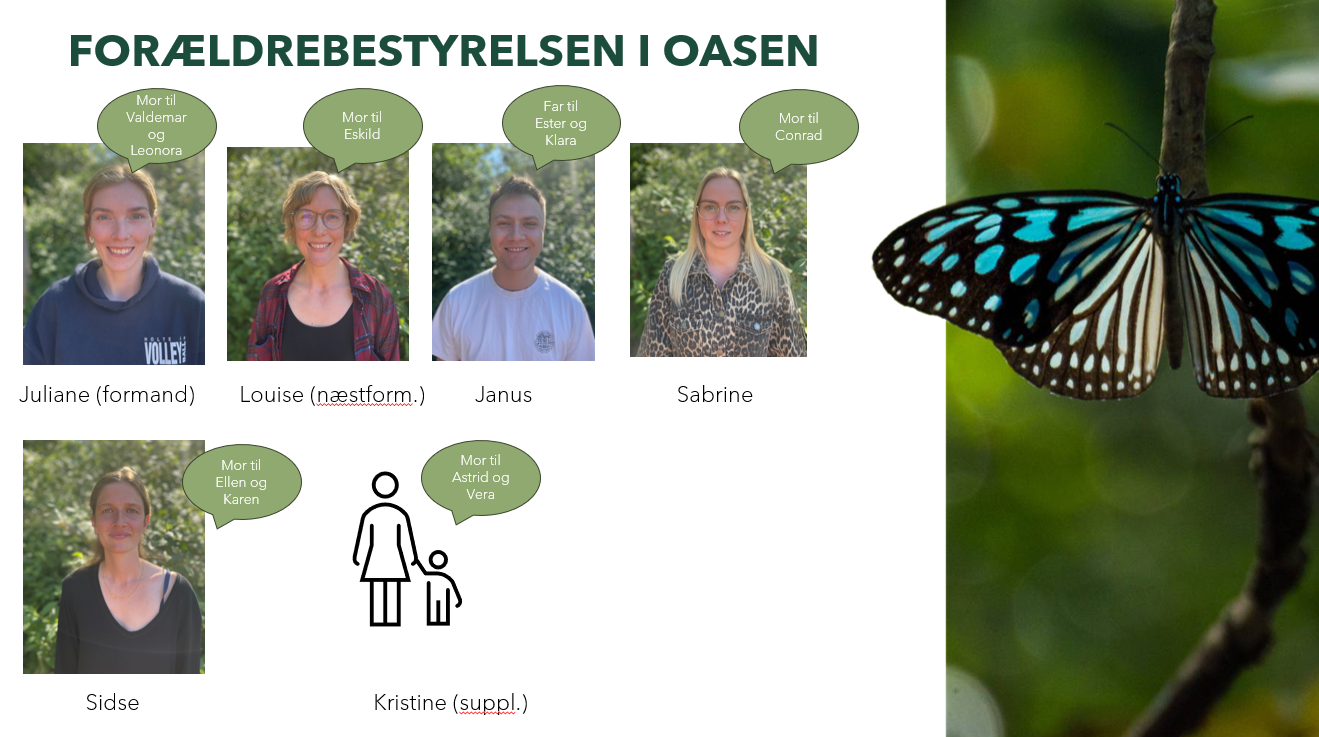 Vi vil også meget gerne være behjælpelige med at svare på spørgsmål vedrørende det at have sit barn i Oasen, så tag endelig fat i hvilket som helst medlem af bestyrelsen ved behov.